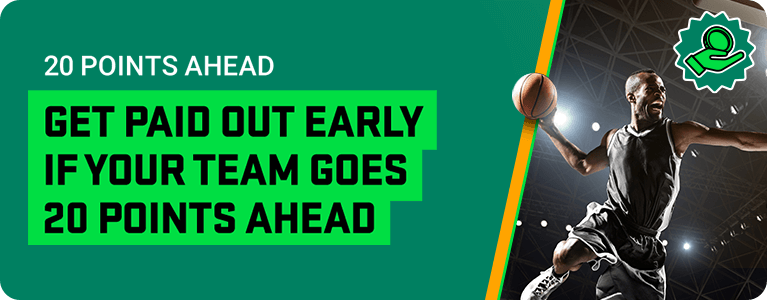 • For single bets, if your selection goes 20 points ahead during the match, we will pay your bet out early as a winner, even if your selection doesn’t win the match.